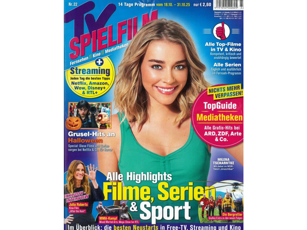 Dvoutýdenní televizní program TV Spielfilm v německém jazyce vás nejen informuje o celovečerních filmech ale sleduje i neustále rostoucí rozsah kanálů a programů a tak vám pomůže najít ten správný i pro vás.